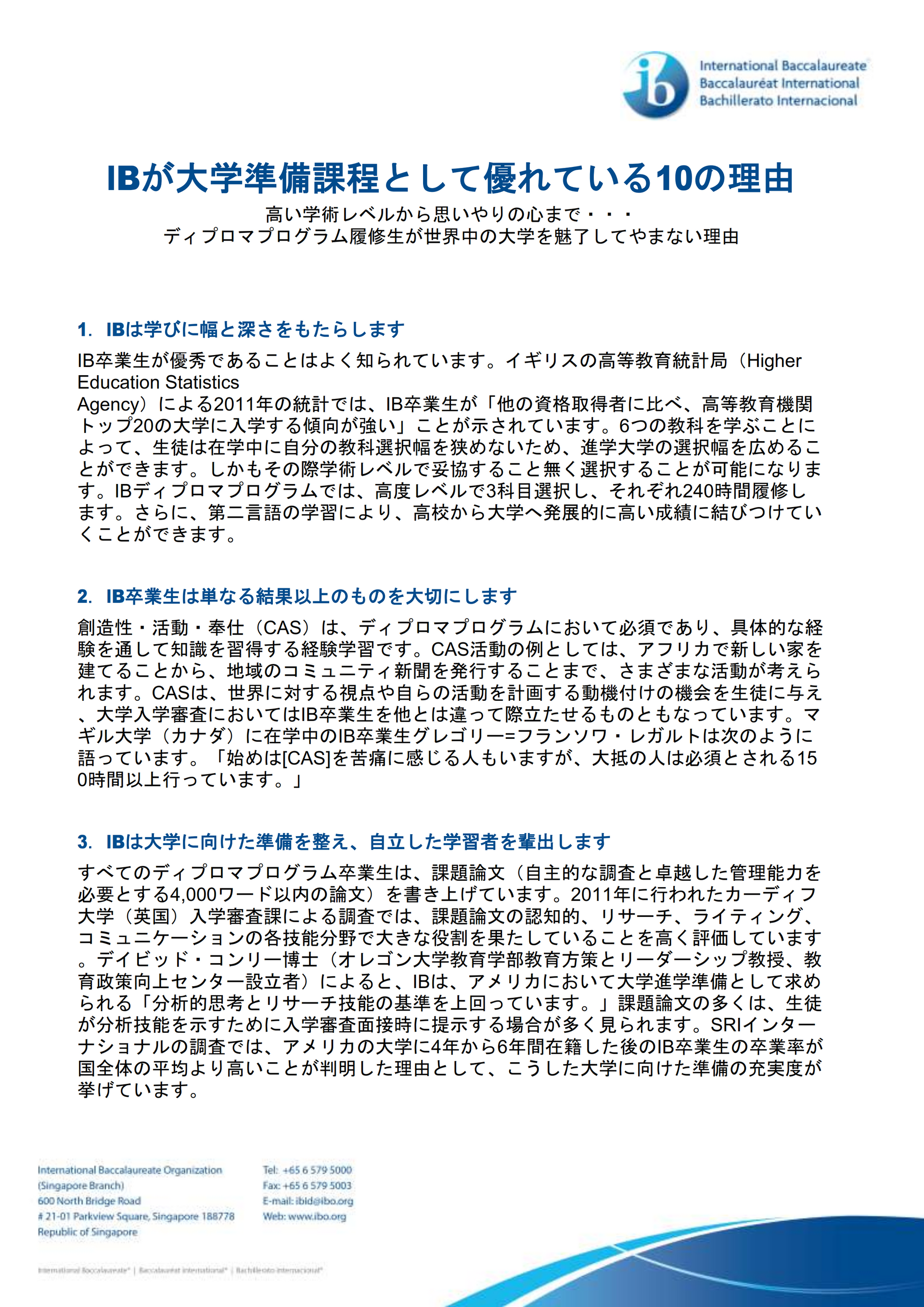 『IBが大学準備課程として優れている10の理由』(PDF, 162 KB)